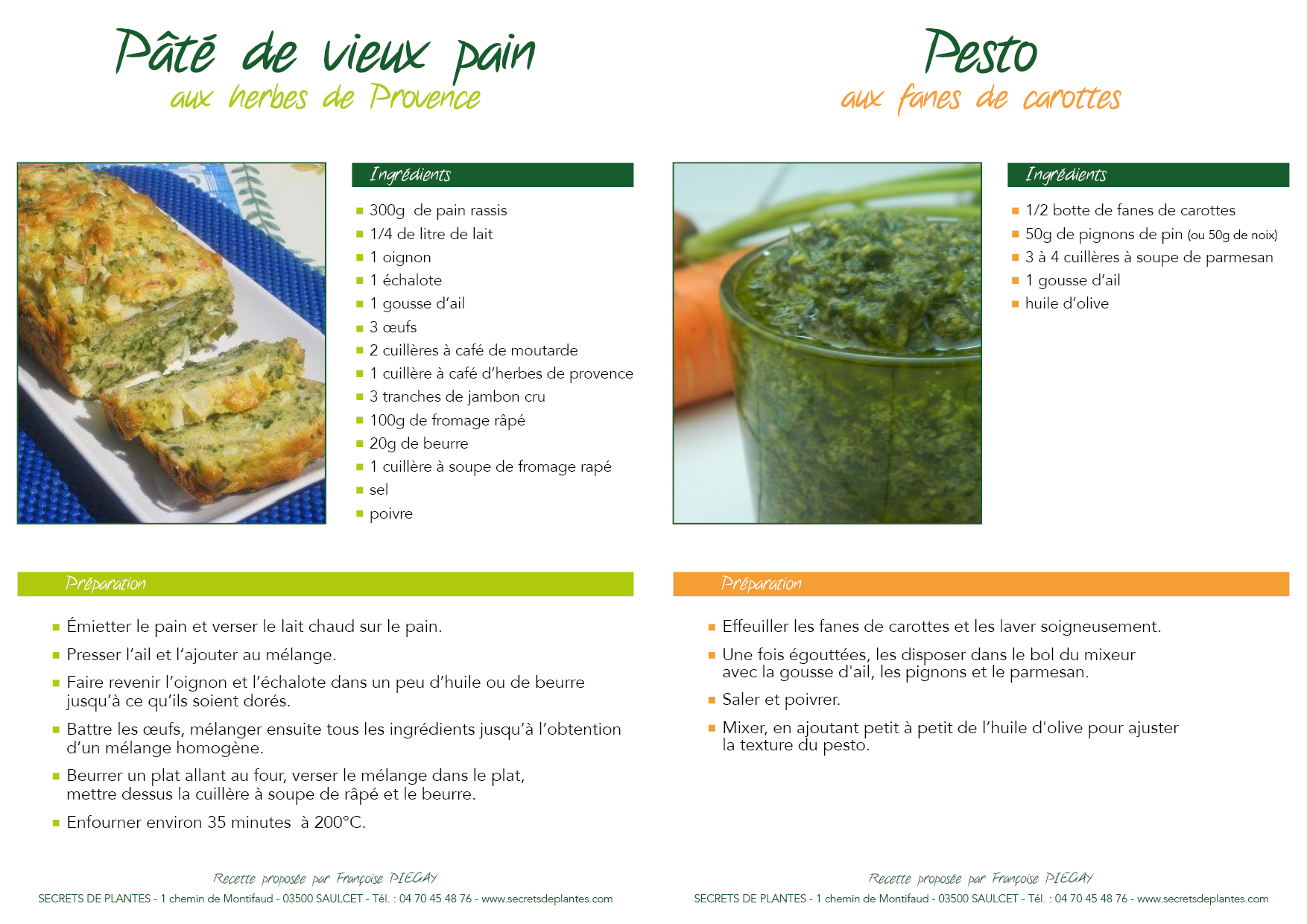 Télécharger les recettes : pâté de vieux pain et pesto aux fanes de carottes