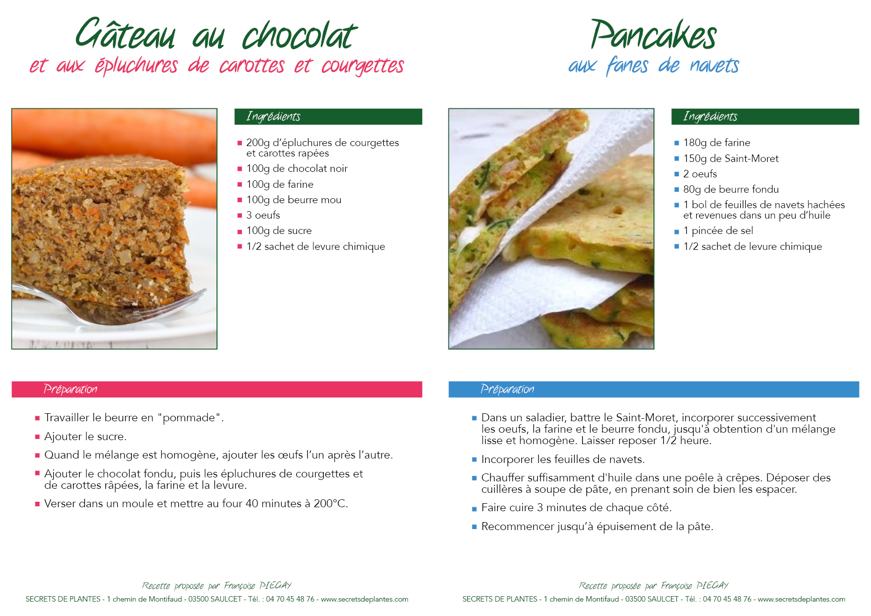 Télécharger les recettes : gâteau au chocolat et aux épluchures et pancakes aux fanes de navets